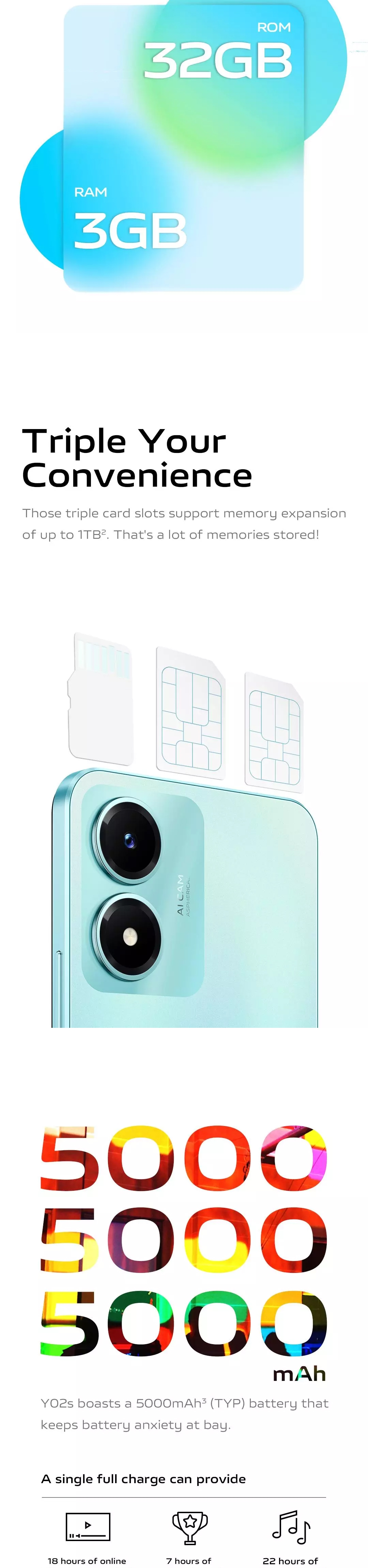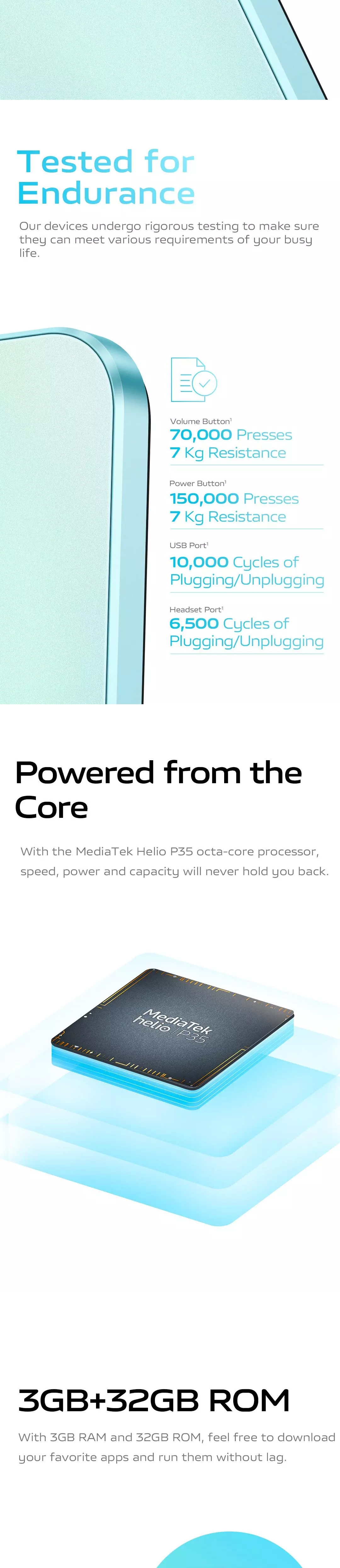 - 3GB RAM and 32GB internal storage