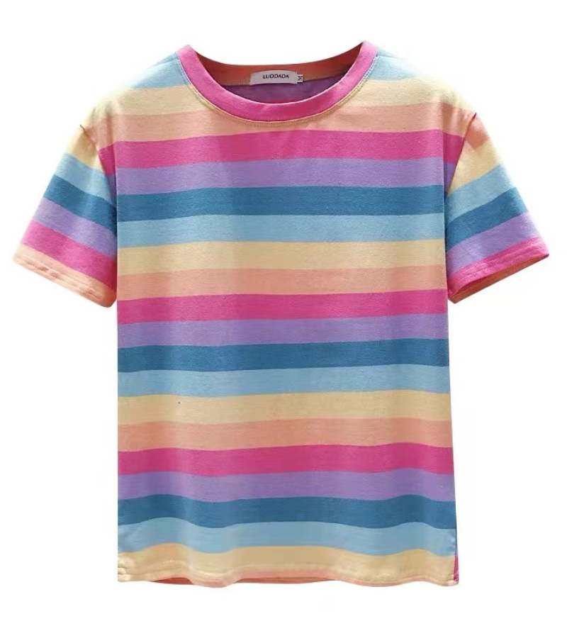 超受欢迎的条纹韩式宽松圆领短袖T恤