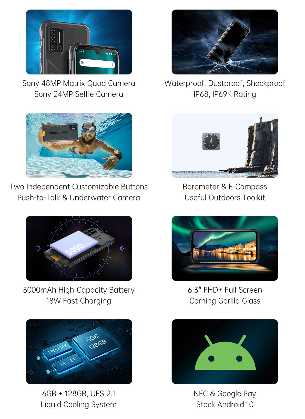 UMIDIGI SG官方| BISON | NFC谷歌支付| IP68 IP69K防水| 6.3 FHD 2K显示屏| 48MP索尼相机| 5000mAh SG 3针18W快速充电